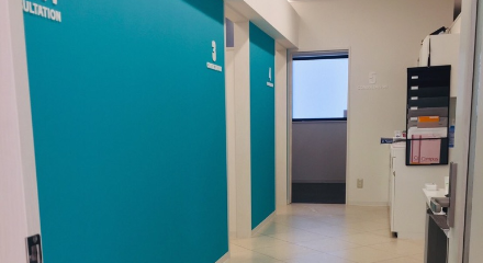 初めて来院される方も安心してお越しいただけるよう開放的な受付にしています。玄関から受付までバリアフリーであり、車椅子やベビーカーなどもスムーズに移動ができます。ローカウンターですので、椅子にお掛けになって問診表をご記入できます。